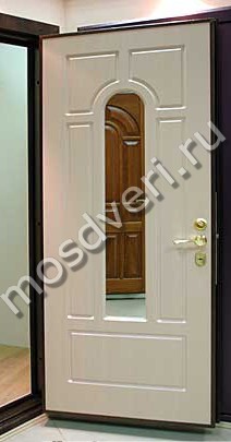 Квартирная входная металлическая дверь с зеркалом и шумоизоляцией МДФ+порошок